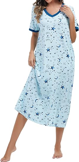 100% Cotton Star Print Nightdress with Keyhole Detail