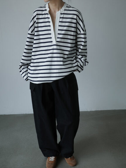 Classic Striped V-Neck Long Sleeve T-Shirt – Women’s Loose Fit Casual Top
