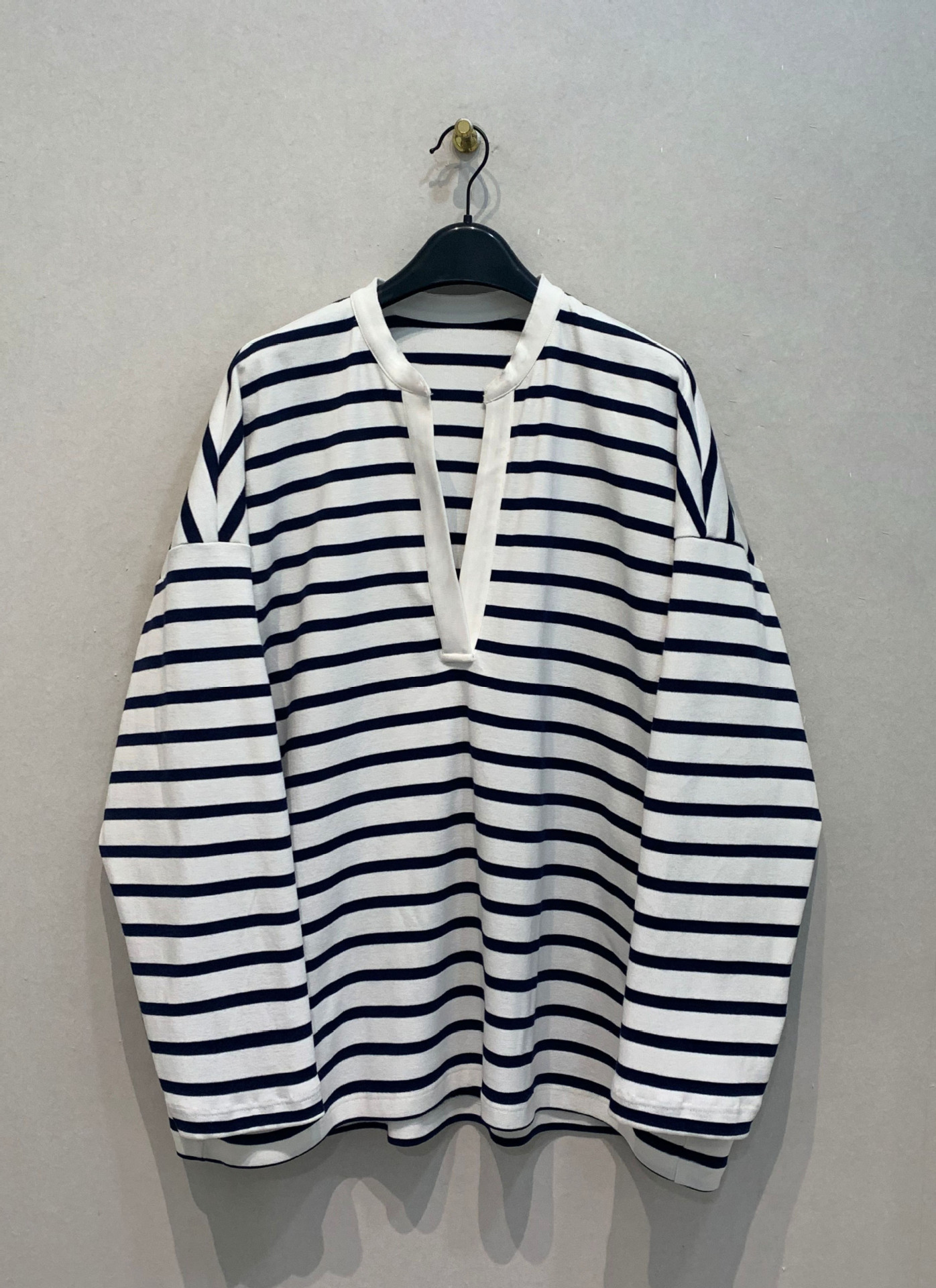 Inspired by the timeless French Breton stripe, this V-neck long-sleeve top blends minimalism and comfort in one elegant design. Crafted from high-quality cotton knit fabric, it is soft, breathable, and gentle on the skin, making it perfect for all-day wear.