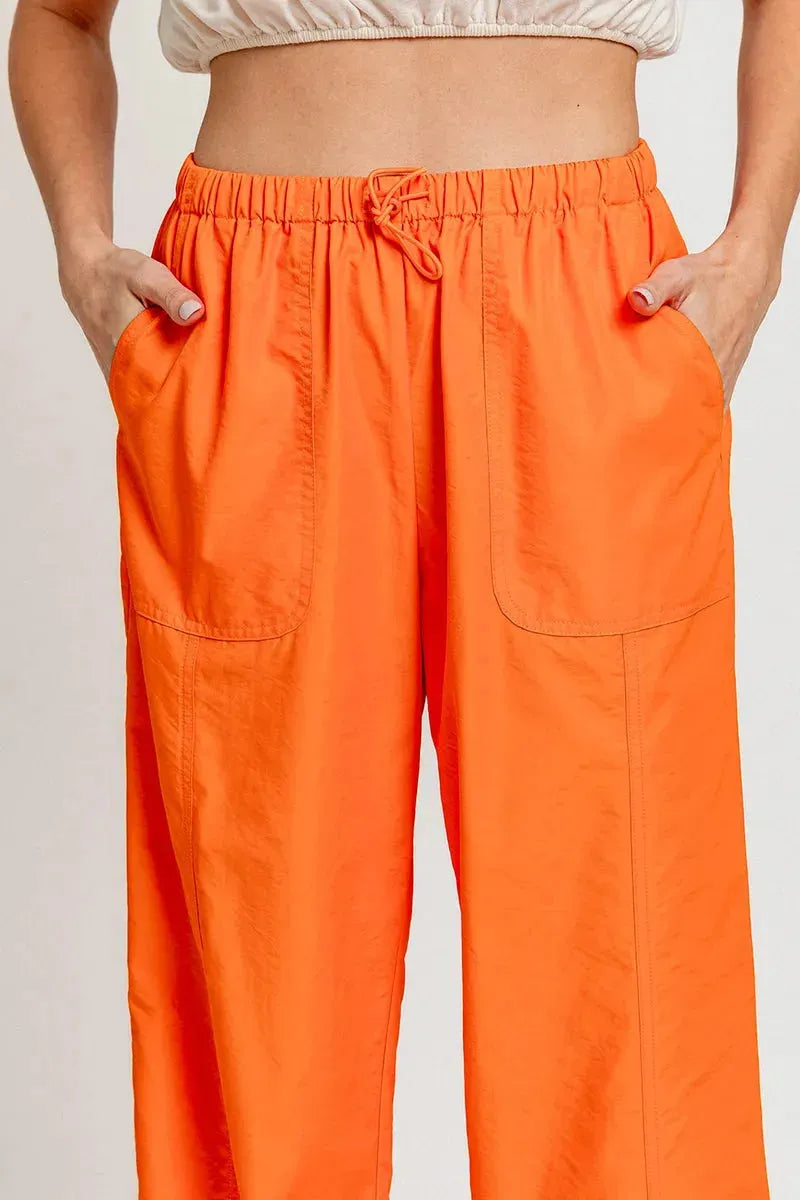 🖤 Features: Premium fabric with excellent drape, elastic waistband with adjustable drawstring, functional side pockets, ankle drawstring detail, dressy-casual versatility, relaxed fit through legs, available in trendy orange and sage green colorways