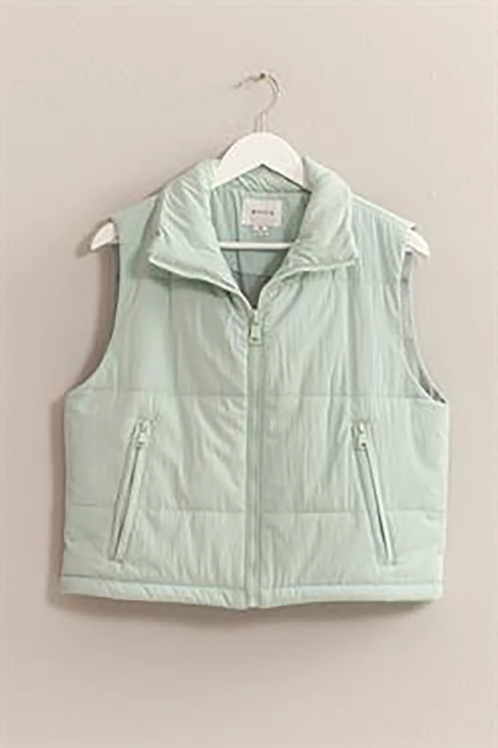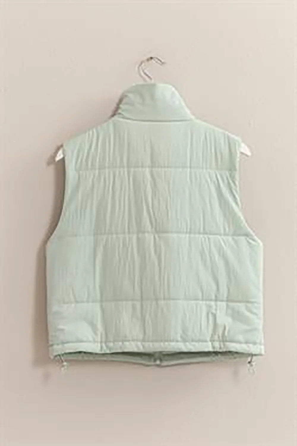 Lightweight Side Drawstring Front Pocket Neutral Puffer Quilted Vest