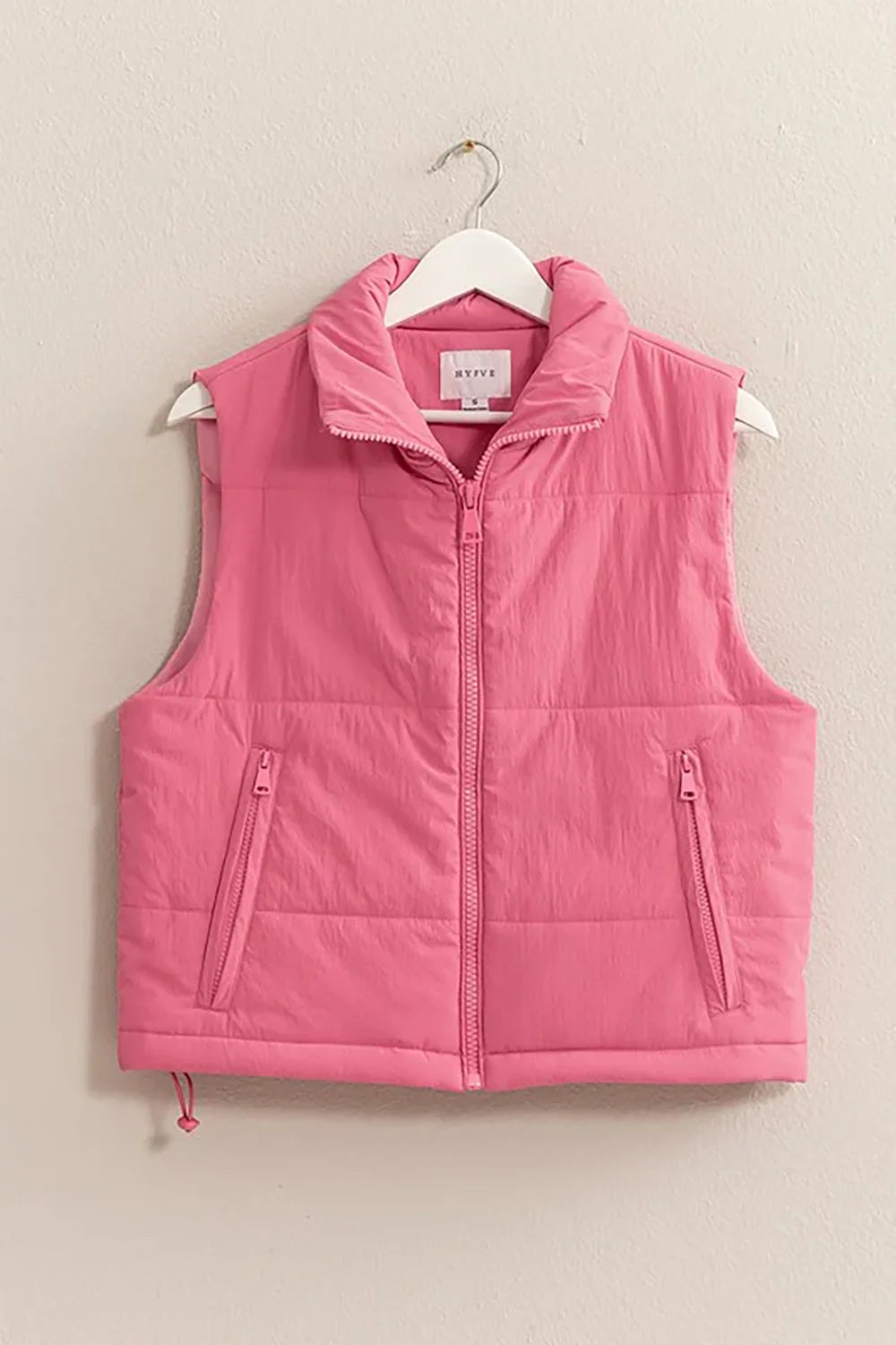 Stay cozy and stylish with our Lightweight Drawstring Puffer Vest. This quilted sleeveless vest is the perfect layering essential that your boutique customers will absolutely love for transitional weather. Featuring adjustable side drawstrings and functional front pockets, this versatile piece combines comfort with that coveted athleisure aesthetic that’s trending everywhere. Available in three gorgeous colorways – classic black, trendy green, and feminine pink – giving your customers options they’ll love.