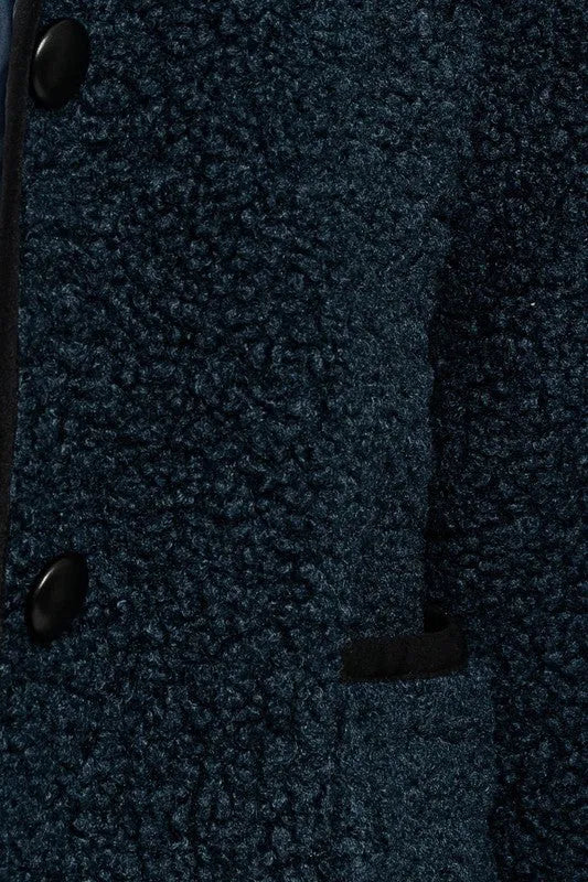 Sherpa Collard Front Pocket Button Closure Jacket