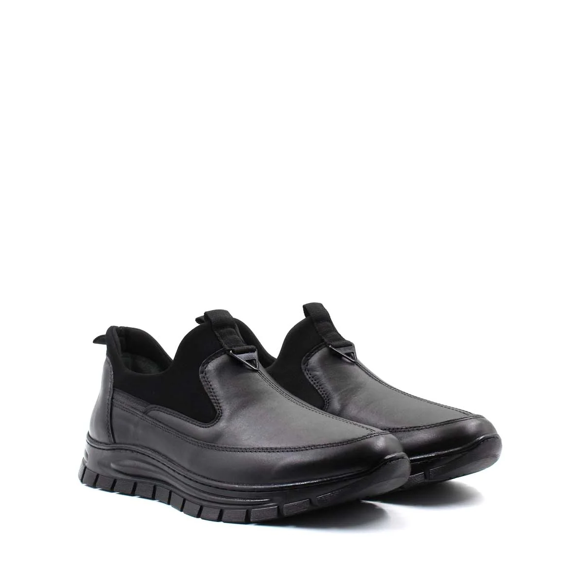 These men’s all-black slip-on shoes offer a clean and practical design suitable for work, commuting, and daily walking. Featuring a durable synthetic upper and a textured anti-slip outsole, they deliver great comfort for long hours of standing or walking. The slip-on structure ensures easy on-and-off convenience, making them ideal for fast-paced environments.