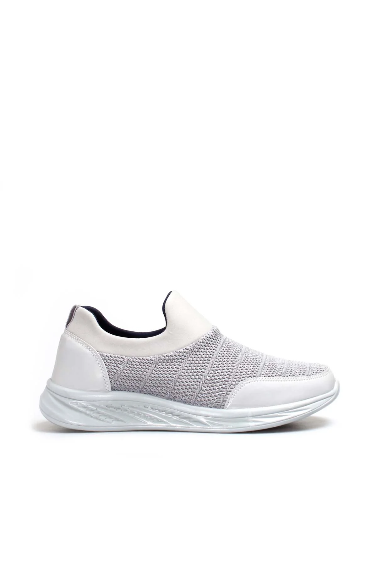 These men’s slip-on walking sneakers feature a lightweight, breathable knit mesh upper paired with a flexible elastic collar for effortless wear. Designed in a clean light grey and white color scheme, the shoes are stylish and versatile for everyday use. The EVA outsole offers shock absorption, stability, and comfort, making it ideal for long walking sessions, daily errands, or casual sports.