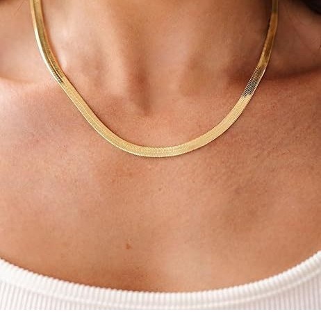 Minimalist Herringbone Chain Necklace – Women’s Elegant 18K Gold Plated Choker