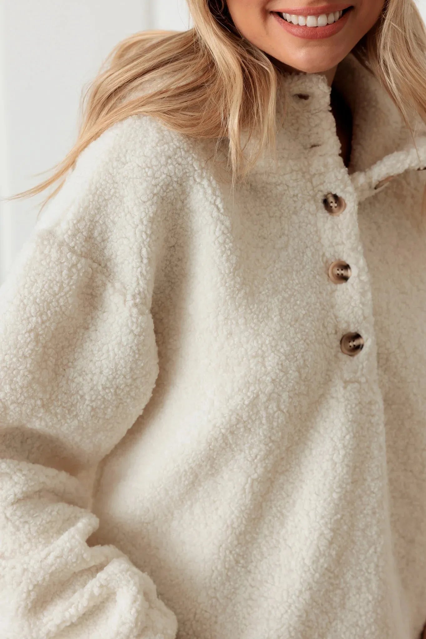 Be the first to review “Sherpa Button-Up Two Pocket Hooded Pullover Jacket”