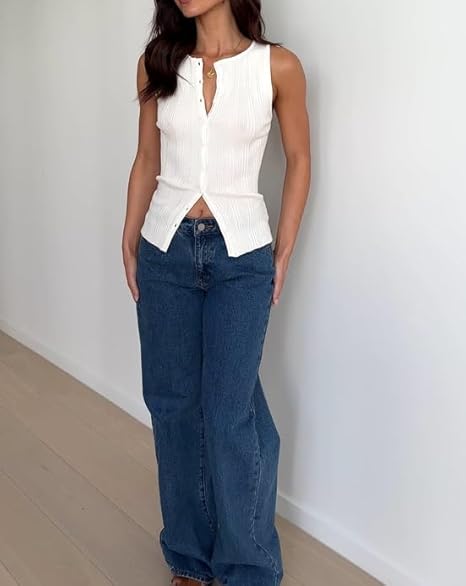 This sleeveless ribbed knit vest (One Size) is a minimalist yet stylish piece, perfect for summer and spring. Made from high-stretch ribbed fabric, it offers a soft, breathable, and comfortable fit while flattering your natural silhouette.
