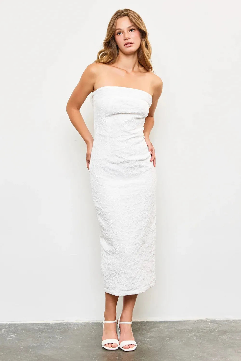 This elegant Princess Line Slit Lace Front Long Bandeau Maxi Dress combines sophistication with a touch of allure. The intricate lace front detailing enhances the neckline, while the bandeau design offers a flattering silhouette. The flowing maxi length, complemented by a stylish side slit, ensures ease of movement and a dramatic effect. Perfect for formal occasions or summer events, this dress is a versatile addition to any wardrobe, exuding grace and charm.