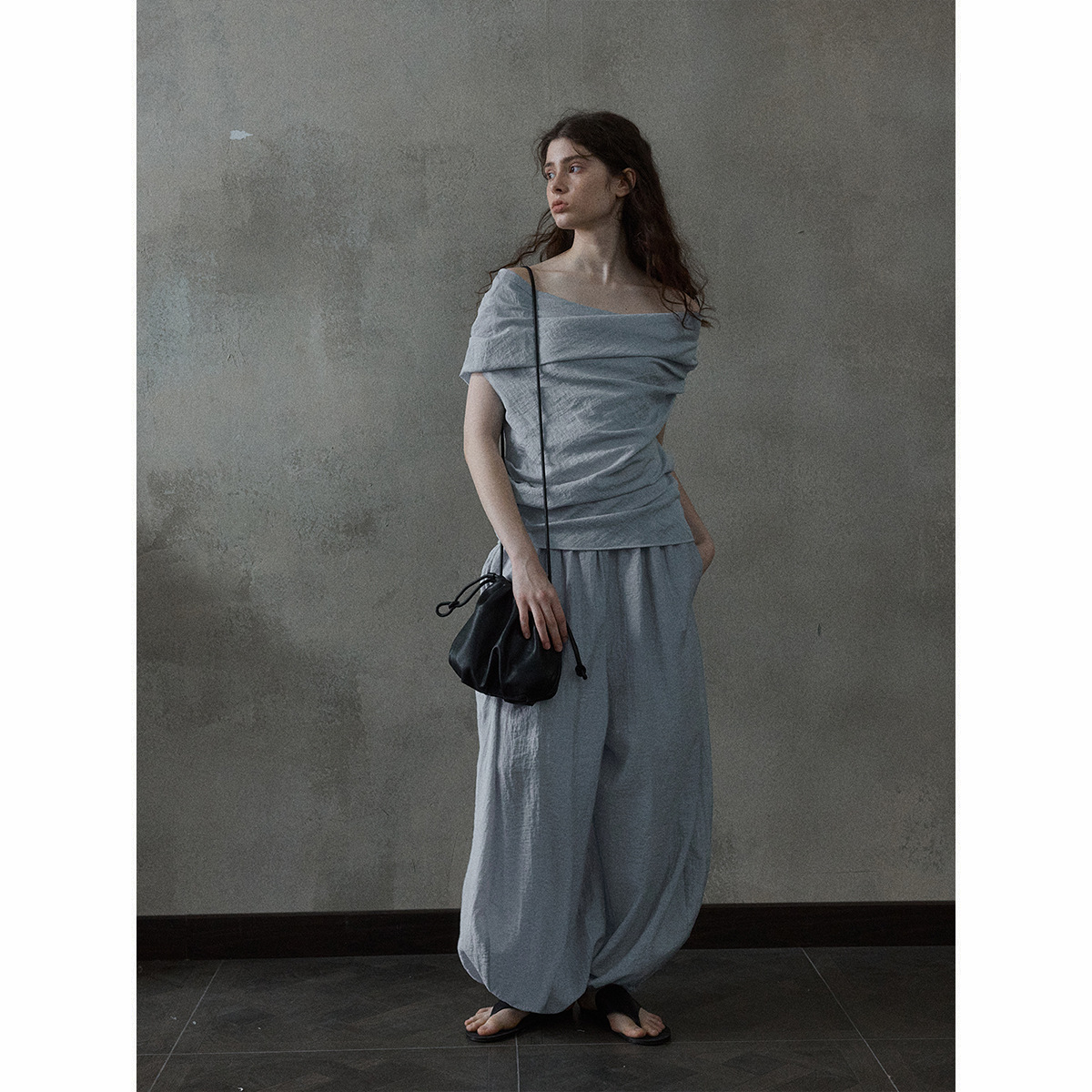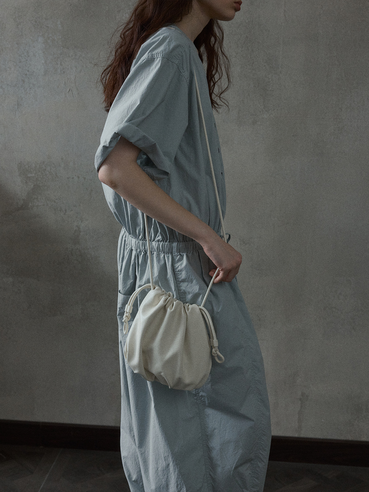The drawstring closure allows for easy access while forming gentle pleats that enhance its sculptural look. The adjustable slim strap enables versatile styling — wear it crossbody, on the shoulder, or as a handheld pouch. Despite its compact size, it easily fits daily essentials such as a phone, wallet, lipstick, and keys.