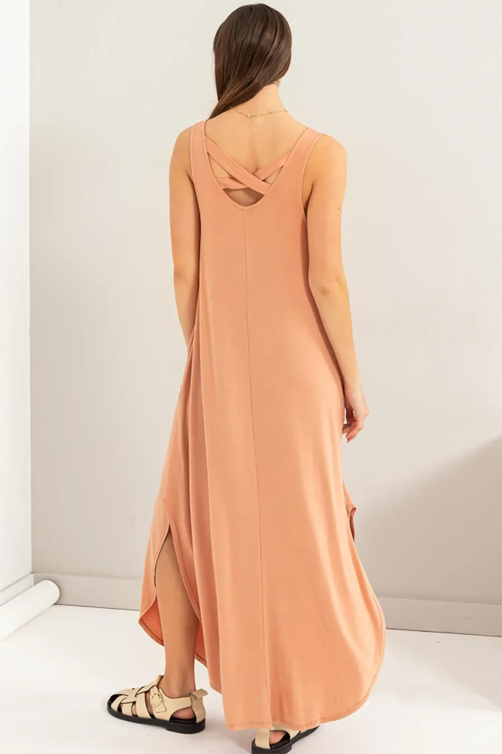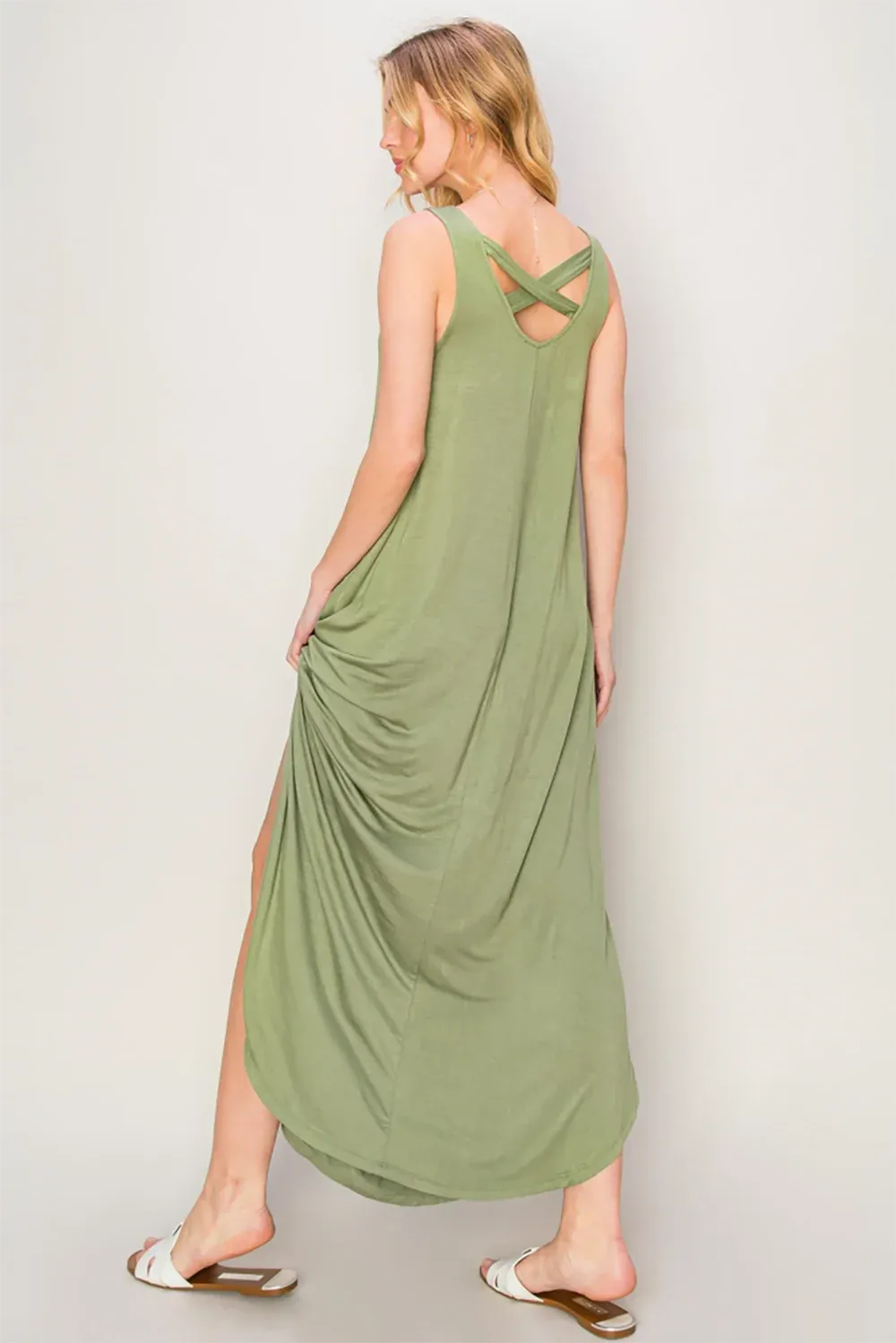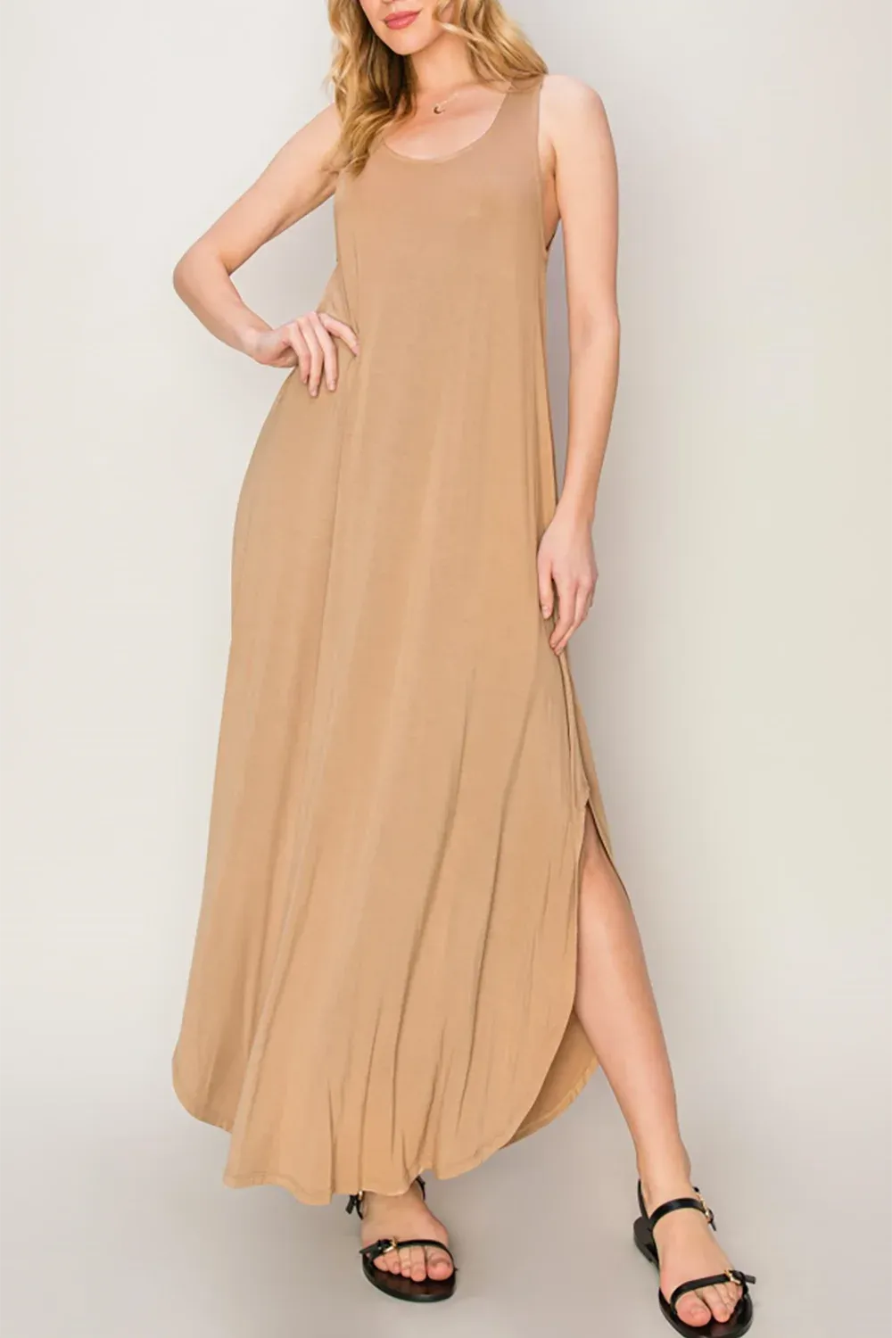 Sleeveless Two Side Pocket Flowing Maxi Dress