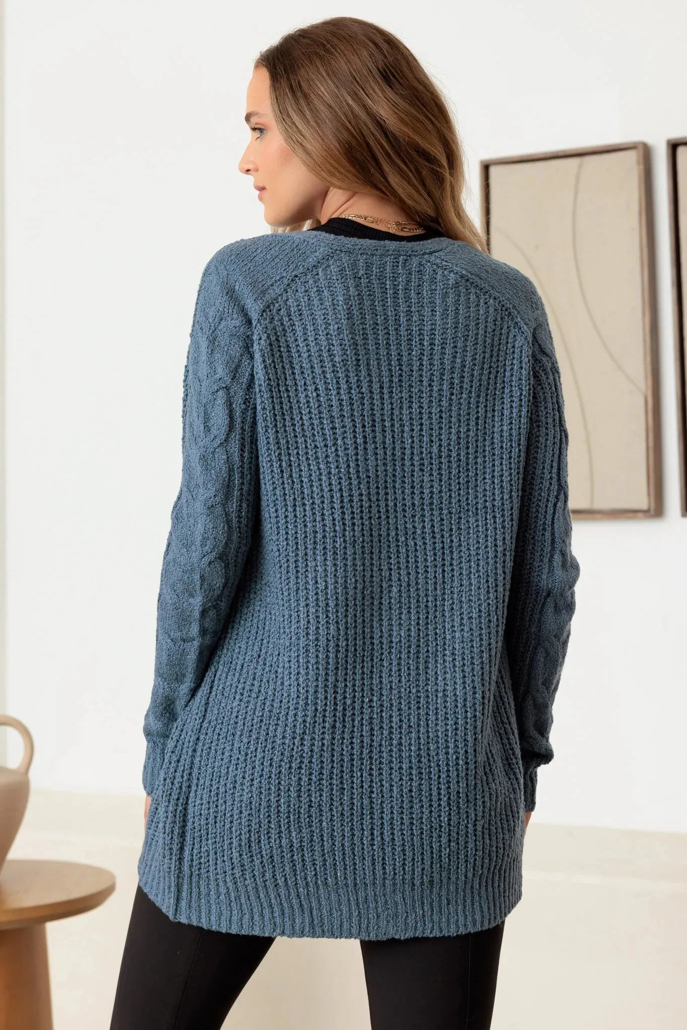 Open Front Cable-Knit Long Sleeve Cardigan