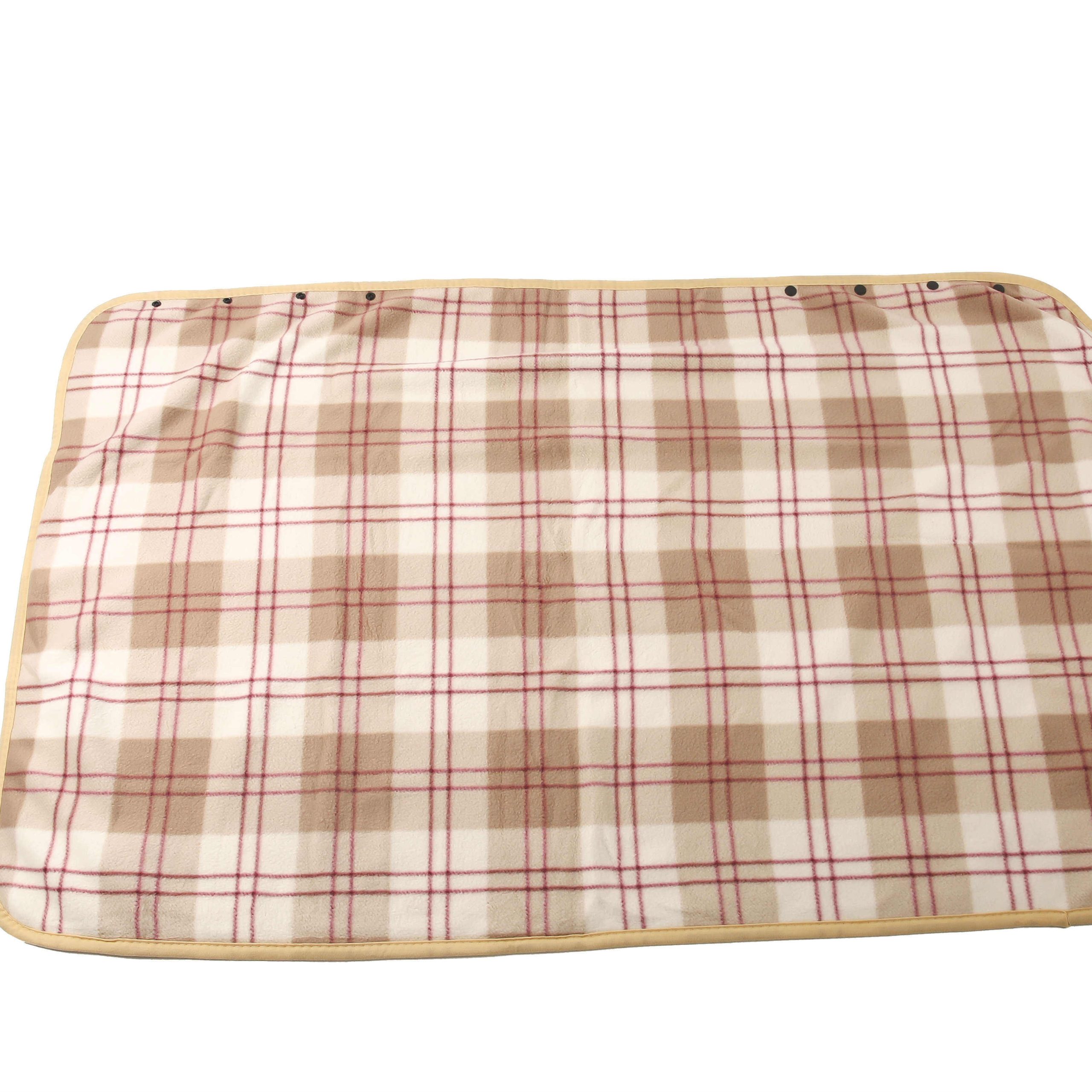 The blanket features a classic Beige × Light Brown × Burgundy Plaid color palette, offering a warm and elegant look suitable for various outfits and environments.