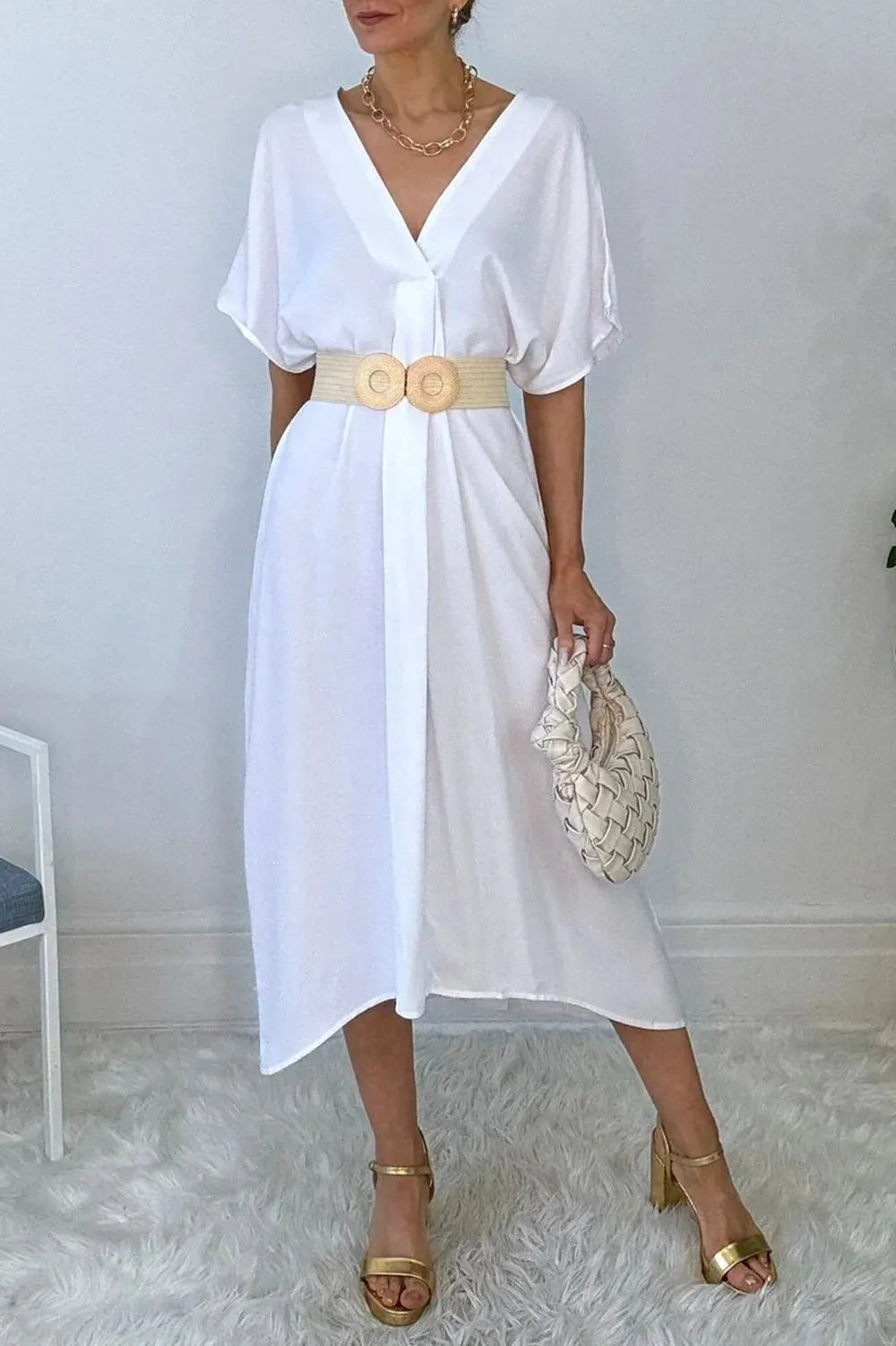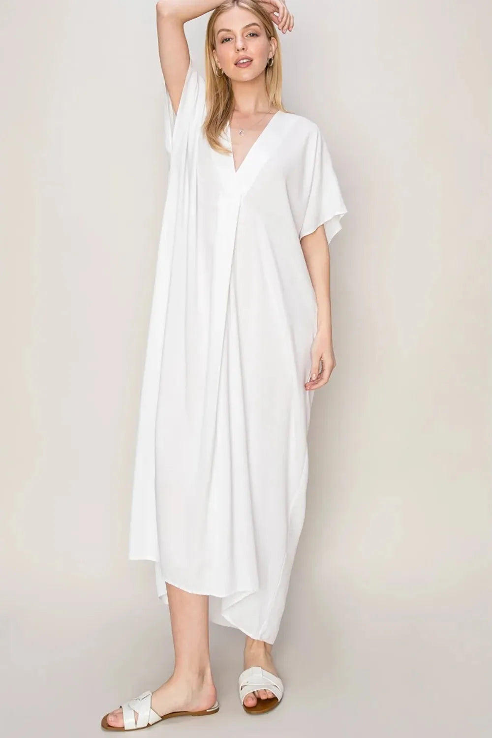 🖤 Features: Soft, luxurious fabric, oversized dolman sleeves, flattering V-neckline front and back, relaxed fit, breezy kaftan silhouette, ankle-length design, premium quality, easy-care material, timeless white color