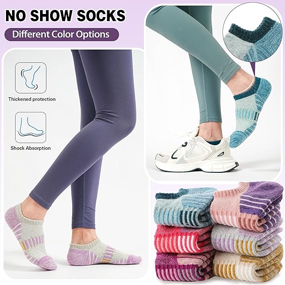 These colorful women’s ankle socks are crafted from a premium cotton blend fabric for a soft, breathable, and moisture-wicking experience.