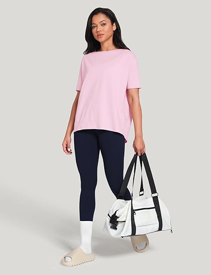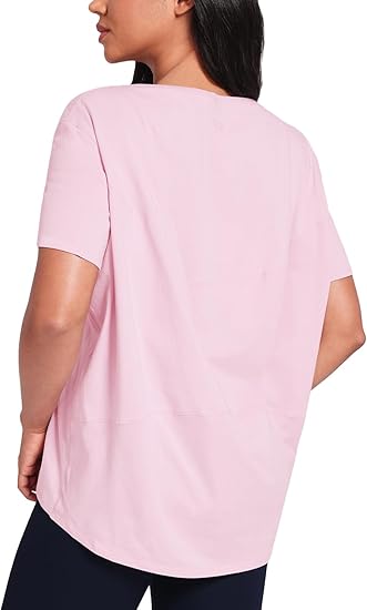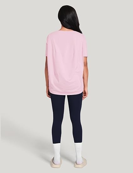 This women’s loose fit pink T-shirt (one size) is crafted from a soft and breathable cotton-spandex blend (95% Cotton, 5% Spandex), offering ultimate comfort and a smooth touch on the skin.